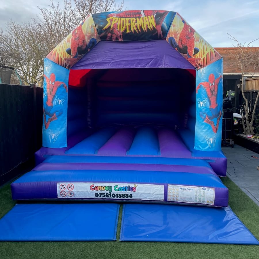 Don't let your next event miss out on the fun and excitement of a superhero adventure. Contact Canvey Castles today to secure your 12ft x 15ft Blue and Purple Spider-man Bouncy Castle. Let us add a touch of magic and wonder to your special occasion.