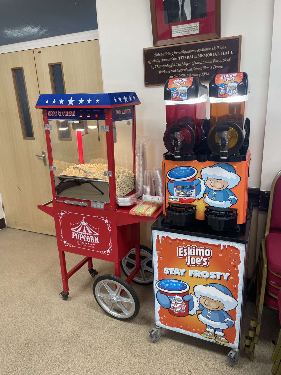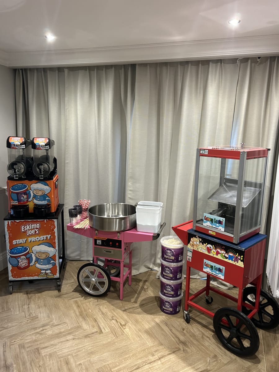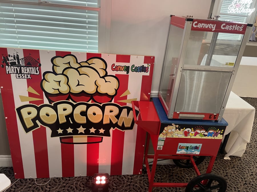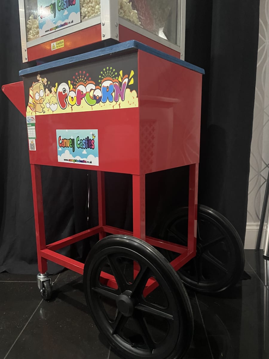 Our fantastic popcorn warmer machine is placed on top of a traditional cart, this releases a great sweet smell into the room. We supply the popcorn of your choice standard being sweet or if requested sweet n salted. Also included in this great package is a large plastic scoop and paper popcorn cones. This machine has a built in light and heats the popcorn. Looking to invite more than 30 guests and need more servings? Don't panic we supply additional cones and popcorn charged at £5 every extra 6 servings needed.