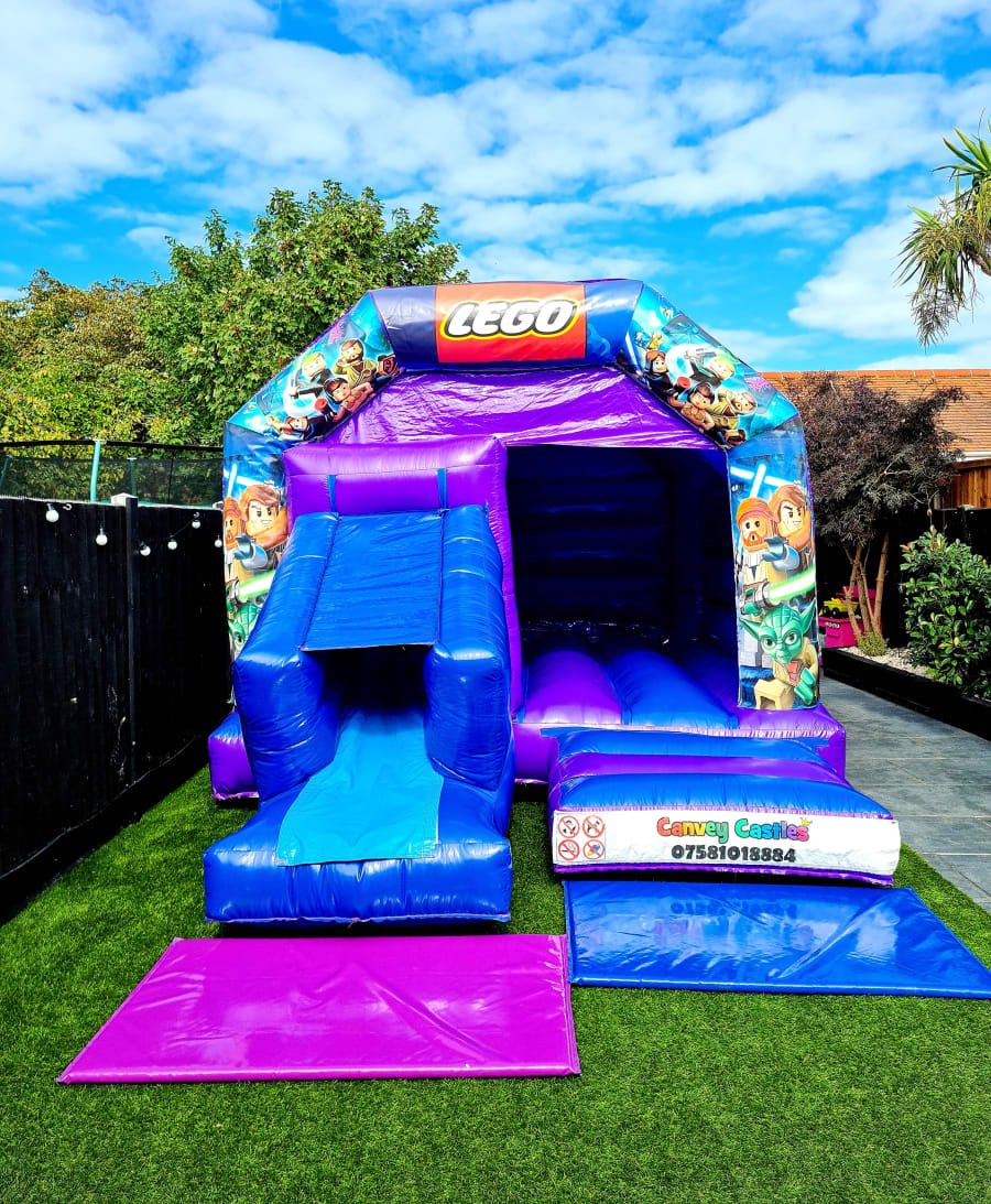 At Canvey Castles, we are dedicated to providing top-quality entertainment solutions across Essex. Our 12ft x 17ft Blue and Purple Lego Star Wars Slide Combo Bouncy Castle in Essex is a testament to our commitment to fun and safety. Our professional team handles the setup and takedown, allowing you to focus on enjoying the event.