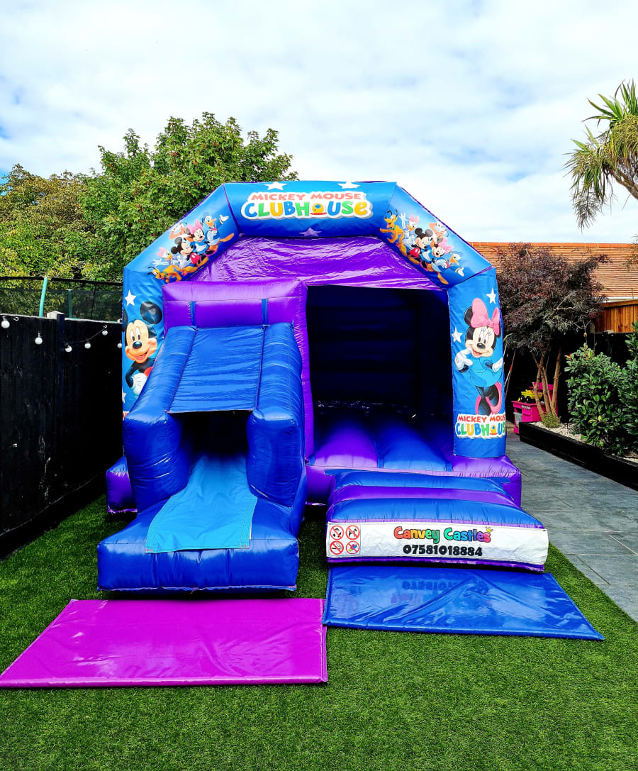 When it comes to Canvey Castles 12ft x 17ft Blue and Purple Mickey Mouse Clubhouse Slide Combo Bouncy Castle in Essex, we are your go-to experts. Our commitment to quality and customer satisfaction ensures that you receive the best service and products for your events. We take pride in our extensive range of bouncy castles, all meticulously maintained and cleaned to meet the highest standards.