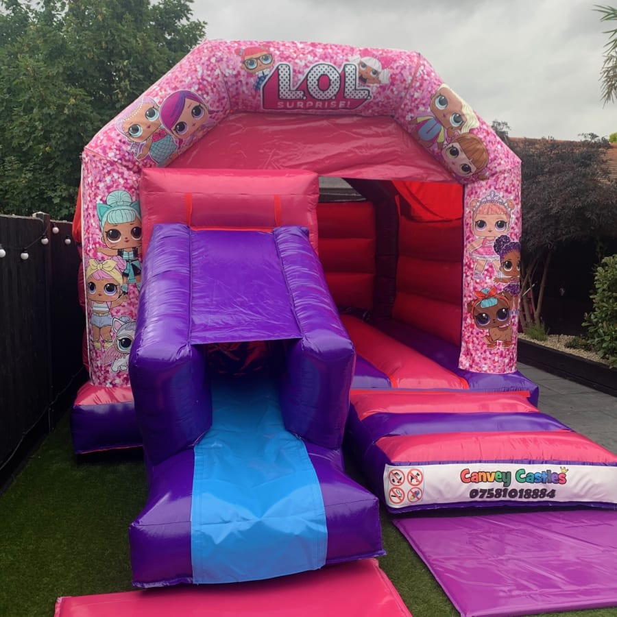 Don't miss out on bringing joy and laughter to your next event with the 12ft x 17ft Pink and Purple LOL Surprise Dolls Design 2 Slide Combo Bouncy Castle in Essex. Contact us today to reserve your booking and let the fun begin. With Canvey Castles, your event is guaranteed to be a success!