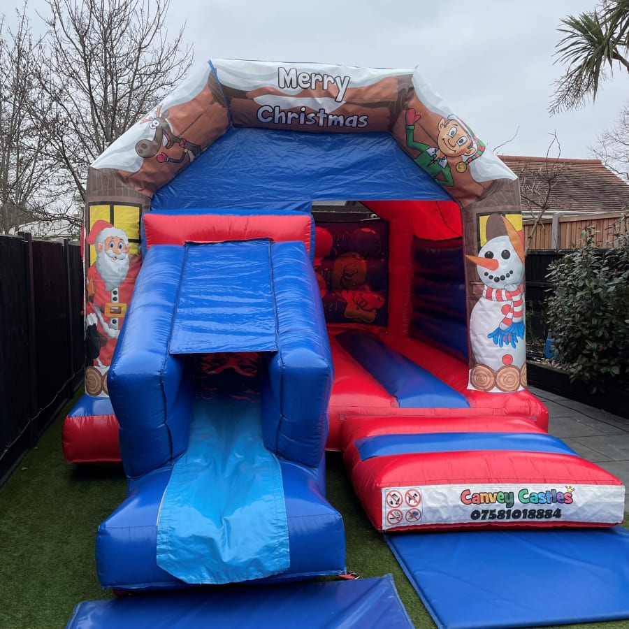 Don't miss out on the chance to create magical memories with the 12ft x 17ft Blue and Red Merry Christmas Slide Combo Bouncy Castle in Essex. Contact Canvey Castles today to reserve yours and elevate your holiday celebrations to new heights!