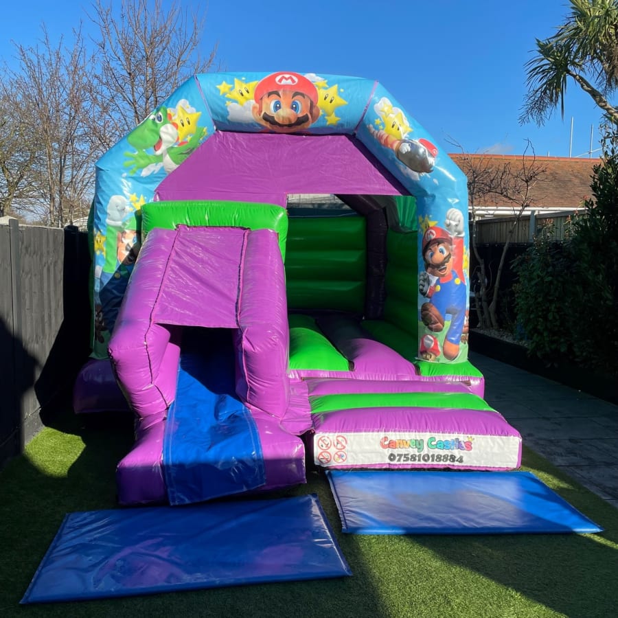 Bring the Super Mario universe to life at your next event with Canvey Castles' incredible 12ft x 17ft Green and Purple Super Mario Slide Combo Bouncy Castle in Essex. Contact us today to learn more about our rental options and to book this fantastic bouncy castle for your upcoming event!