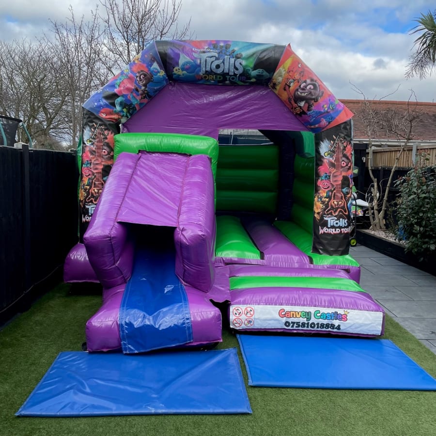 Whether you're planning a birthday party, school fair, or community event, our Trolls World Tour Slide Combo Bouncy Castle is a fantastic choice. With canvey castles 12ft x 17ft Green and Purple Trolls World Tour Slide Combo Bouncy Castle in Essex, you're guaranteed to create an unforgettable experience for all attendees.