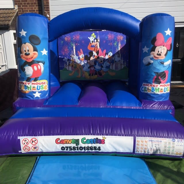 Let the adventure begin with Canvey Castles! Elevate your party with the magic of Mickey Mouse and create unforgettable memories for your little ones. Book our 10ft x 10ft Purple and Blue Mickey Mouse Clubhouse (low height) Bouncy Castle today and watch the joy unfold!