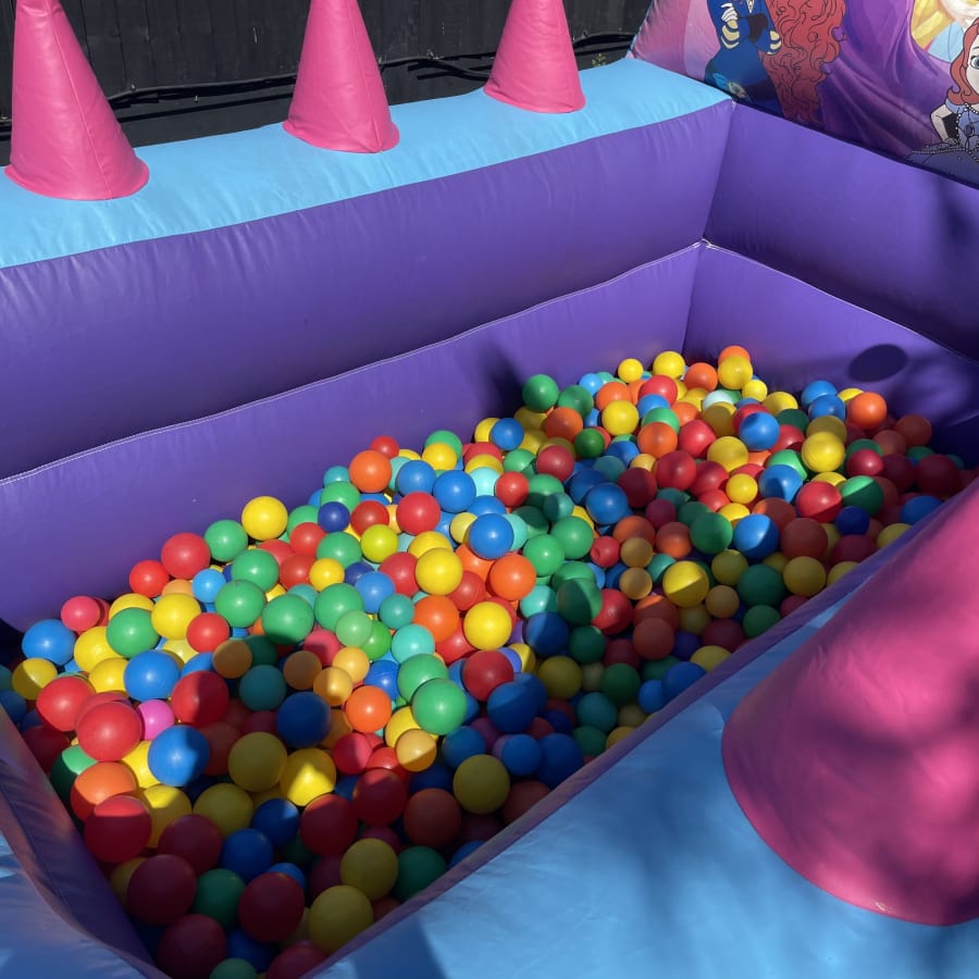 This stunning inflatable ball pit can be enjoyed by all the children. the popular Disney Princess printed theme in pink, blue and purple. Balls can be balanced and they will float along the sidewall at mid air. Matting provided for the front entrance of the ball pool.Why not add a medium Disney pink princess bouncy castle to this product for additional fun.