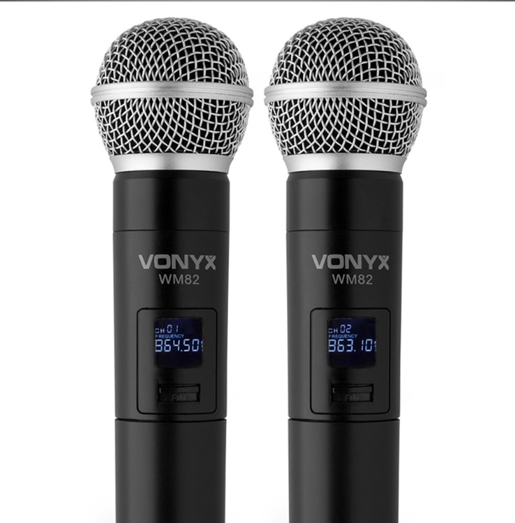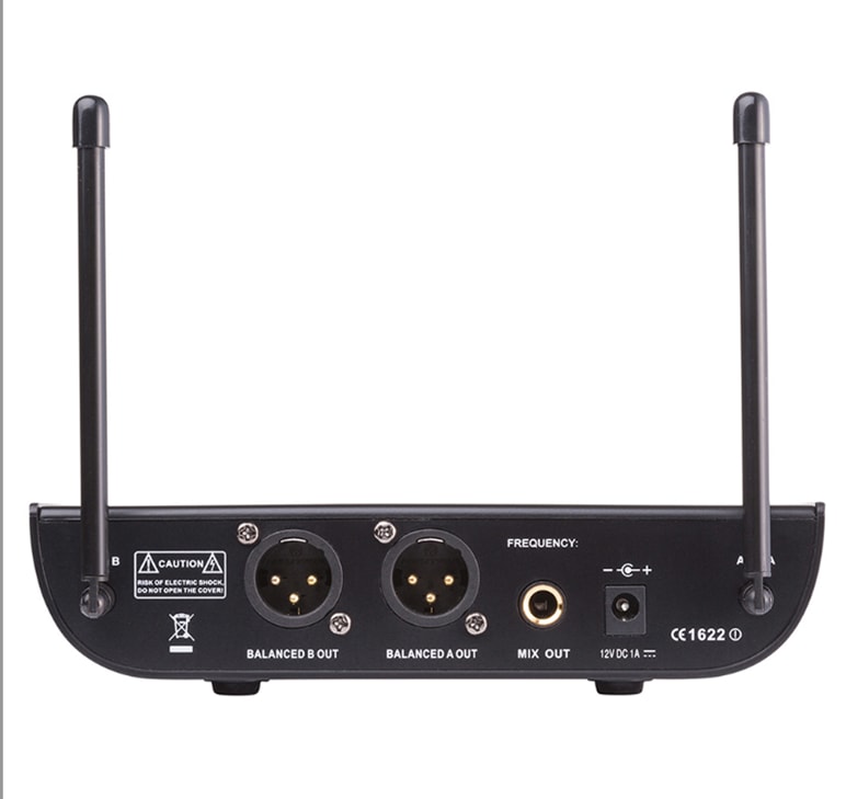 2 channel fixed frequency UHF wireless microphone systems, including two handheld microphones. Ideal for systems requiring the freedom of two independent wireless microphones. A range of 50m or more is obtainable in ideal conditions. Ideal for those who need to move around and those wanting to get rid of leads.
