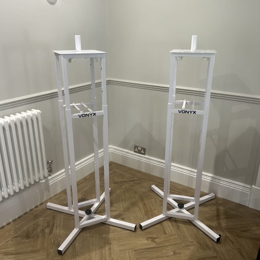 Elevate your DJ game with the sleek and versatile Dj Plinth Stand! This powerhouse duo of two gobo moving head disco lights on podium stands will take your performances to new heights. With their fully adjustable height, from 100cm to 180cm, you can effortlessly create the perfect ambiance for any event. Our stand covers come in both white and black, allowing you to customize the look to match your style. No more fumbling with wing nuts - our easy setup and tear down will have you up and running in no time. Plus, with a max weight load of 30kg, you can confidently showcase your equipment without any worries. Grab this pair of Dj Plinth Stands and Gobos today and watch as they become the centerpiece of every party!