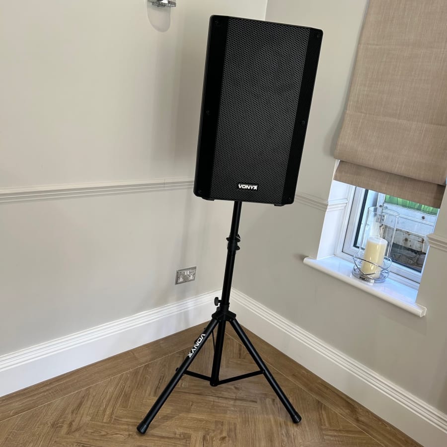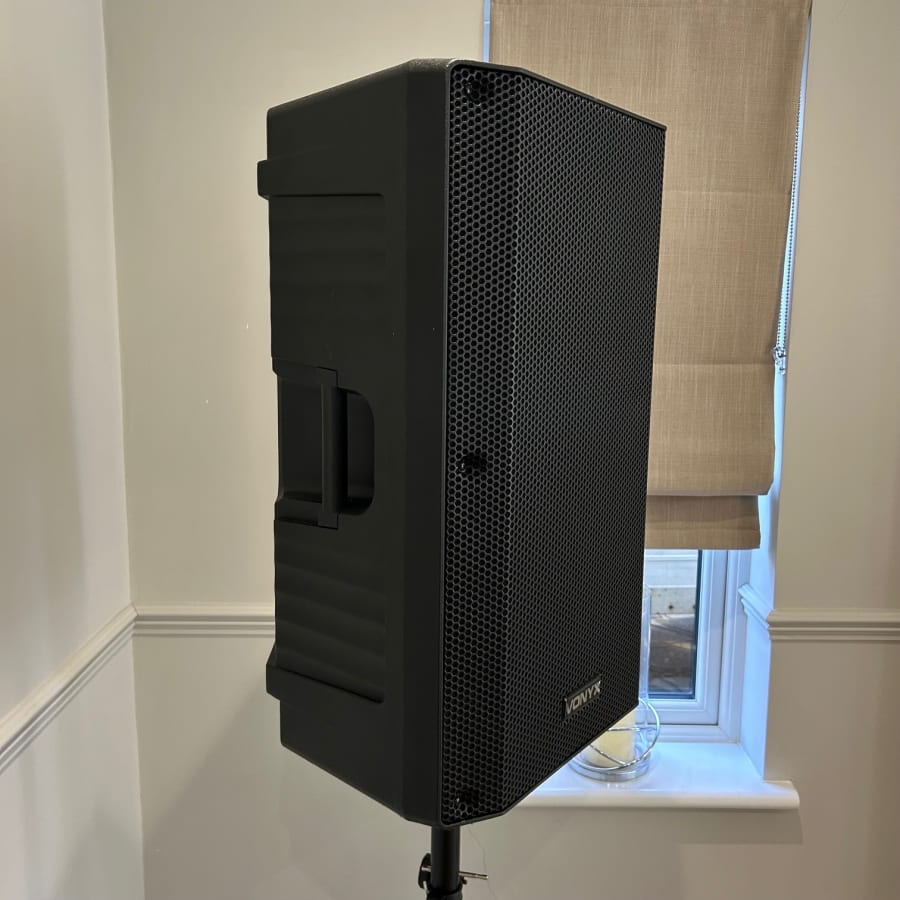 Two microphone inputs are available alongside an adjustable vocal echo effect and EQ controls in order to balance the bass and treble levels for suitable and preferred output tones. With a full-range frequency response, the powered DJ speakers deliver a detailed sound accommodating both vocal and musical reproduction in great detail. In addition, a separate guitar input is offered making it suitable for band use or even to introduce an electric guitar or bass during the event.