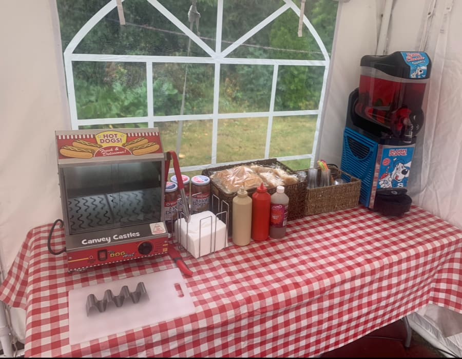This package includes 40 servings of any flavoured slush with cups, lids and straws included. The hot dog steamer comes with 40 servings of hot dogs and buns, all utensils and sauces included.
