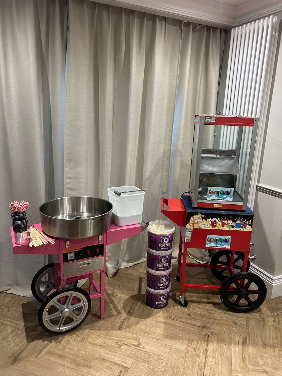 This package includes 40 servings of popcorn and candy floss, additional servings can be added at and extra charge.